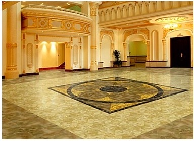 Extremely beautiful and glittering jewel-like floor tiles covered all the hall ways and open areas at the first floor of the The International Art Museum of America (IAMA). H.H. Dorje Chang Buddha III, the artist, wielded his brush and applied colors to create those gorgeous and resplendent as gemstones and with rustic, charming tiles. So ordinary people could replace common tiles, marble, and granite slabs in the old style, and enjoy the splendor of earthly mansions and the beauty of heavenly palaces.