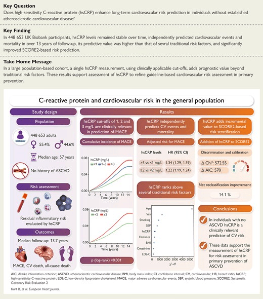 A landmark study published in the European Heart Journal (2025) analyzed 448,653 adults with no prior history of heart disease, following them for over 13 years. The researchers categorized hsCRP levels into three risk tiers: